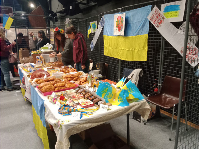 | 'Our' Ukrainians had a stall selling their homemade baked goods and handcrafts, to raise money to aid Ukraine. That's Irina and Svitlana on the stall. |